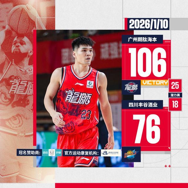 - 龙狮篮球俱乐部2026-01-10 22:34:532025-26赛季CBA常规赛第十三轮四连主第三场大胜四川广州朗肽海本 106 : ...发表于: 01-11 11:42