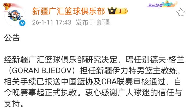 新疆男篮正式官宣!国家队教练走马上任,成为主帅,全力冲击前八