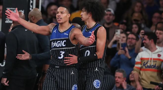 除了顶级的投射能力,贝恩的防守属性也与魔术的体系完美契合。魔术本身就是一支防守能力出色的球队,而贝恩虽臂展较短,移动和协防能力受限于臂展存在短板,但他足够强壮,防守判断力出众且防守习惯极佳。尽管并非巅峰克莱那样的顶级3D球员,但在魔术的团队防守体系中,他已然成为可靠的外线屏障。攻防两端的适配性,让魔术下定决心豪赌一把。