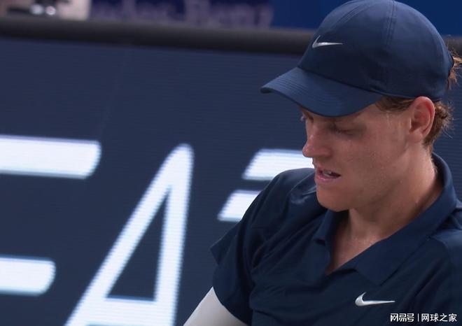辛纳的身体困扰似乎始于第二盘的后半段,在第三盘开始前的换边时,他急忙把冰毛巾放在脖子上。在决胜盘中,这位意大利选手在每个换边时都一瘸一拐地走动,并频繁地按摩右大腿。在2-1的换边时,他没有坐下,而是把腿放在长椅上,试图缓解抽筋的感觉。
