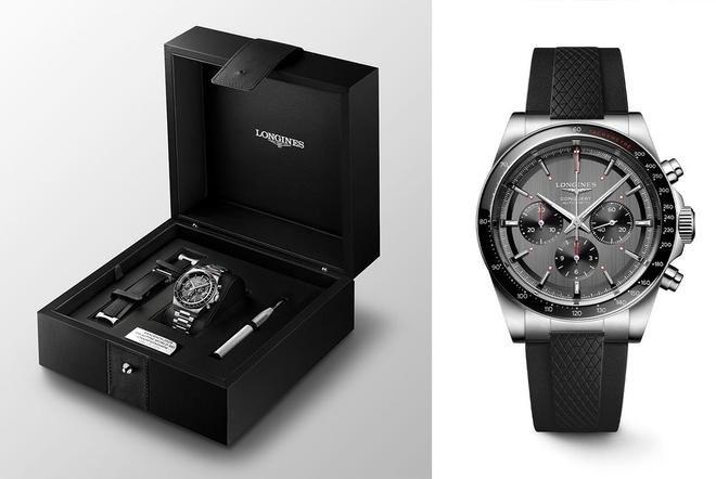 全新限量款腕表配备直径42毫米的精钢表壳,表面交替采用抛光与缎面抛光工艺,搭配镶嵌黑色陶瓷的测速计时表圈,防水深度可达100米。表款采用两面带多层防反光涂层的抗磨损合成蓝宝石表镜。炭灰色表盘于3时位置的黑色小秒盘,以及6时、9时位置的黑色计时盘呈现鲜明对比,表盘边缘的蜗纹为此系列的标志性设计元素。全新表款搭载浪琴表专属L898.5自动上链机械机芯,内置硅游丝及创新组件,防磁性能超过ISO 764标准的十倍,动力储存长达约59小时。此款腕表配备三折式表扣的精钢表带或带有双折式表扣的黑色橡胶表带,每一枚腕表均配有专属黑色礼盒。