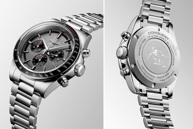 为庆祝明年2月举办的第48届国际雪联(FIS)世界高山滑雪锦标赛,浪琴表推出全新康卡斯悦动计时滑雪限量款腕表,限量发售2025枚。此表款在旋入式表背中央,镌刻有第48届国际雪联世界高山滑雪锦标赛的官方形象——一位飞驰的滑雪运动员。在表背边缘处,还特别刻有"SAALBACH 2025-FIS ALPINE WORLD SKI CHAMPIONSHIPS"和"LIMITED EDITION-ONE OF 2025"字样。