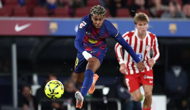 下半场开始之后,两队在短短2分钟之内都有创造破门良机。第53分钟,亚马尔过人后送出直塞,拉菲尼亚打偏了,随后第54分钟,阿尔瓦雷斯倒三角横传中路,小西蒙尼跟进推射同样偏出。