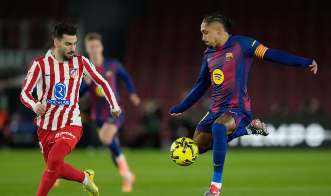 巴萨31逆转马竞!西甲5连胜领跑积分榜拉菲尼亚破门莱万丢点球