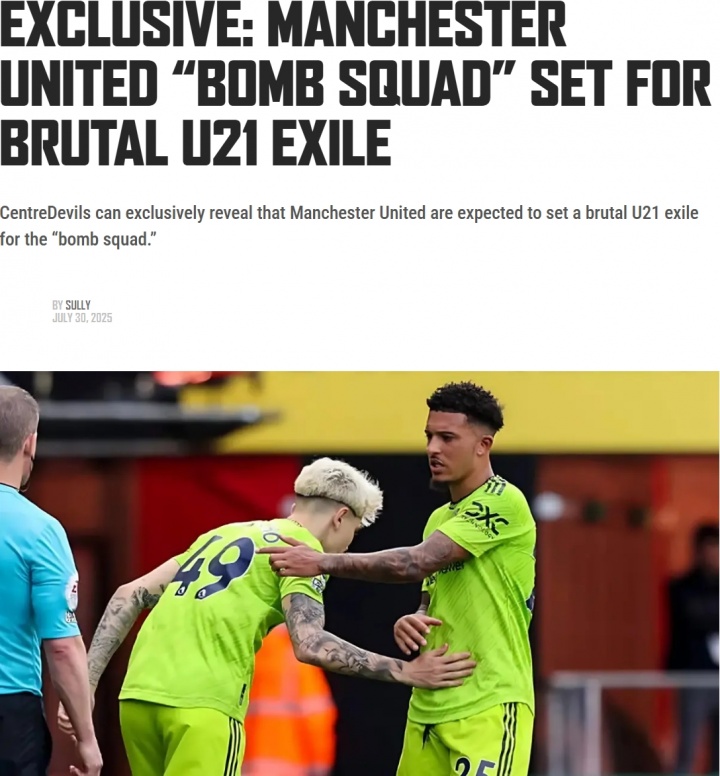 消息称,当曼联一线队结束美国季前赛归来后,剩余的“炸弹小队”成员,也就是安东尼、桑乔、加纳乔以及马拉西亚四人,将在今夏剩余时间里被转移到U21更衣室。但如果今夏无法及时完成转会,他们也有可能重新回到一线队。