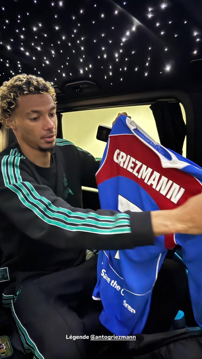 埃基蒂克在社交媒体分享了自己手持格列兹曼球衣的照片并配文道:“传奇!”