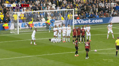 伯恩茅斯客场领先!塞梅尼奥任意球贴地斩!第26分钟,伯恩茅斯的任意球机会,塞梅尼奥主罚任意球一记贴地斩,皮球打穿人墙直钻球门,利兹联0-1伯恩茅斯!↓