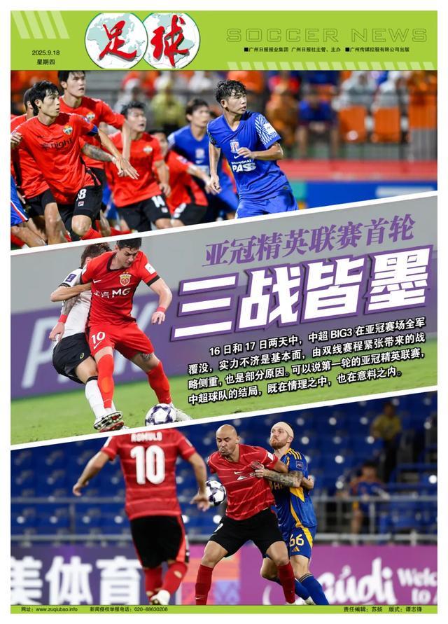 16日和17日两天中,中超BIG3在亚冠赛场全军覆没,实力不济是基本面,由双线赛程紧张带来的战略侧重,也是部分原因。可以说,第一轮的亚冠精英联赛,中超球队的结局,既在情理之中,也在意料之内。