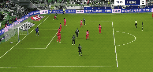 第71分钟,海港后防出现问题,李帅护球有些拖泥带水,张琳芃的解围被张玉宁一挡,直奔球门而去,颜骏凌注意力集中,在球门线上将球没收。