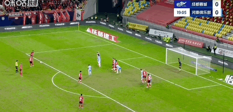 第20分钟,严鼎皓主罚前场任意球直接轰门得手,成都蓉城主场1-0领先!
