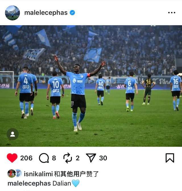 马莱莱在大连的处境峰回路转,不只是积极的恢复训练,在社交媒体上发布了自己在大连英博的照片,并且配了一个蓝色的心表情,无疑这是在主动示好大连,他的留队希望大增,冬窗离队的可能性很低。在申花能够进20个球,不只是喂饼的多,他靠自己的身体、冲击力能够创造出很多机会,今年他在大连的表现,并非是他真正的实力,希望明年他能够找回自己。